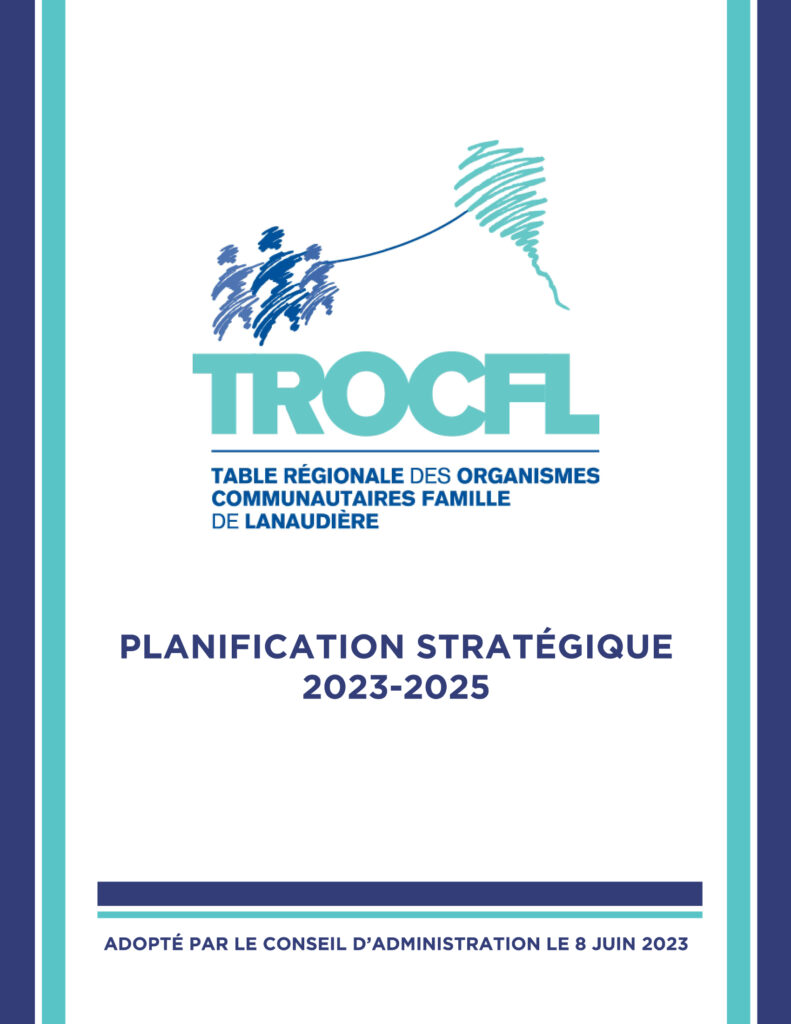 Acquérir une ressource humaine à plein temps et sur une plus longue période pour coordonner les activités de la TROCFL a aussi fait émerger un besoin de consolider les assises du regroupement et de mieux définir la vision et les actions à entreprendre. Ne connaissant pas la possibilité de reconduire le financement afin de conserver le poste de coordination au fil des années en raison de l’absence d’un financement récurrent, les membres du conseil d’administration (CA) ont donc décidé d’amorcer une première réflexion stratégique, ainsi que la production d’une première planification stratégique pour la TROCFL.
